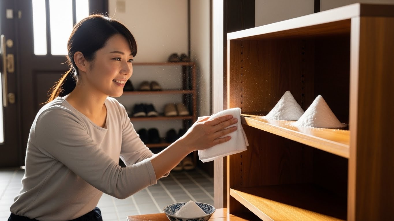 そして、塩が置いてあった場所だけでなく、玄関のたたき(床)や棚を徹底的に水拭きします。盛り塩の効果に頼るよりも、物理的に汚れを取り除く「掃除」の方が、確実かつ即効性のある浄化になります。