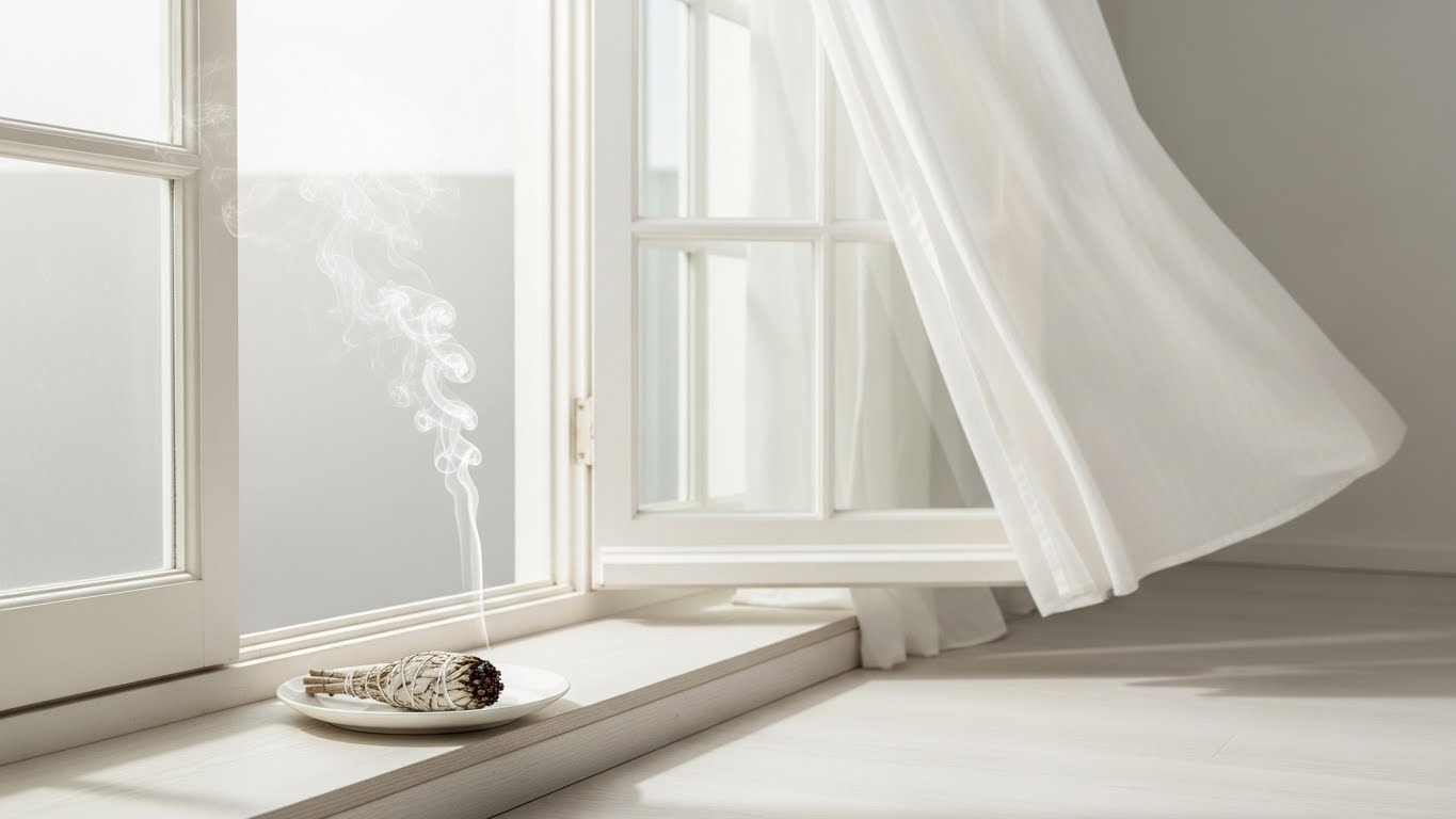 セージの煙は意外とパワフルです。締め切った部屋で焚くと、煙探知機が作動したり、煙たくて気分が悪くなったりすることがあります。物理的に新鮮な空気を取り入れながら行うことで、空間のリセット効果は倍増します。