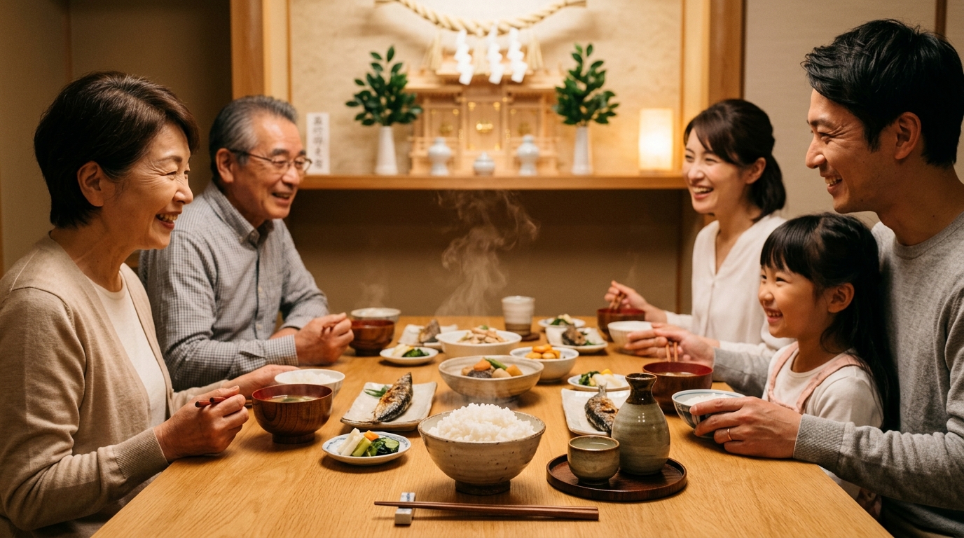 神様と一緒に食事をすることを「直会(なおらい)」って呼ぶんだけど、これこそが神棚をお祀りする一番の醍醐味なんだよね。