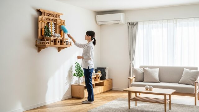「神棚をお祀りしたいけれど、リビングの壁にはエアコンがあって場所がない…」「エアコンの真横や、すぐ下に神棚を設置してもバチは当たらない?」現代の住宅、特にマンションやアパートでは、神棚を設置するための「南向き・東向きの高い場所」を探すと、ど...