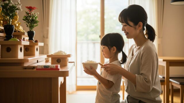 神棚 「いただきます」がもっと深くなる。神嘗祭で子どもに伝えたい、神棚と食卓をつなぐ感謝の話 毎日の「いただきます」、本当の意味を伝えられていますか?「ねえ、ママ。『いただきます』って、どうして言うの?」もし、子どもにそう聞かれたら、あなたは何て答えてあげる?「食事の前の、ご挨拶だよ」うん、それも正解。でも、もしその一言に、もっと深... 2025.09.24 神棚